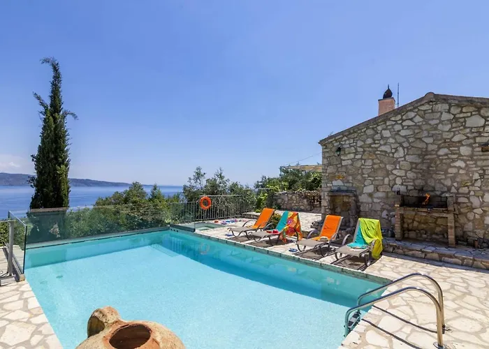 Scirocco & Folitsa Villas dysponuje tarasem z widokiem na morze, 38 min jazdy od lotniska Korfu. Willa oferuje gościom relaksujące doświadczenie z basenem do nurkowania.